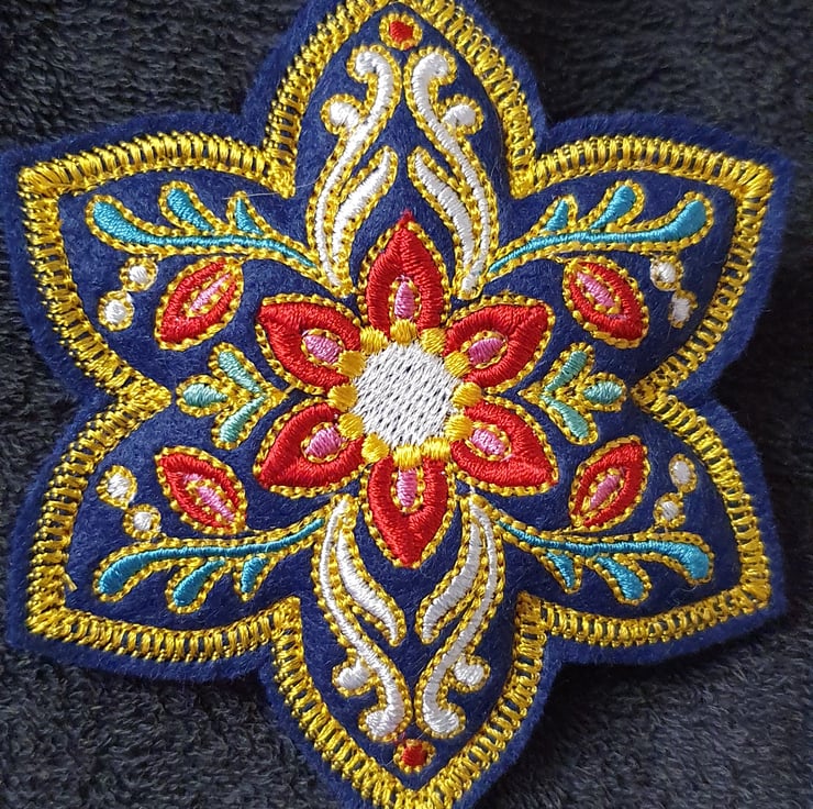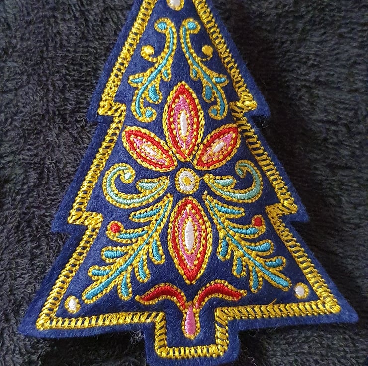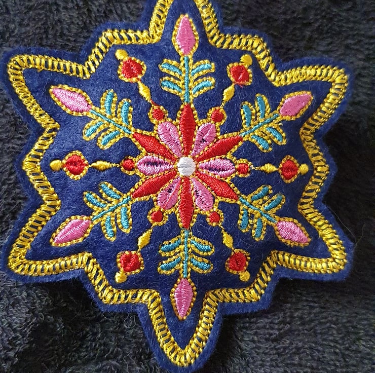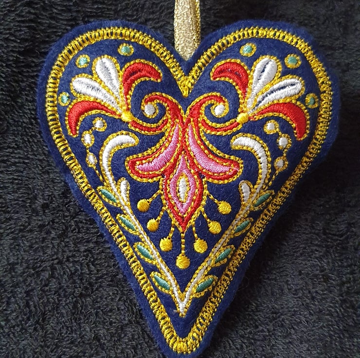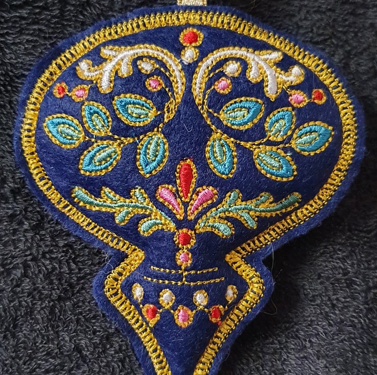 Machine embroidered design on washable felt and filled with hypoallergenic fiberfill.