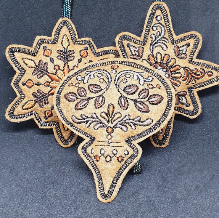 Machine embroidered design on washable felt and filled with hypoallergenic fiberfill.