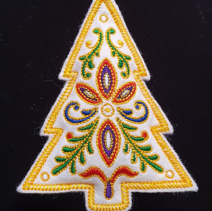 Handmade felt Christmas tree decorations.
