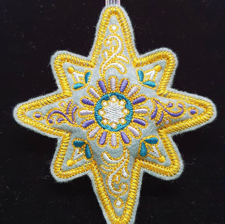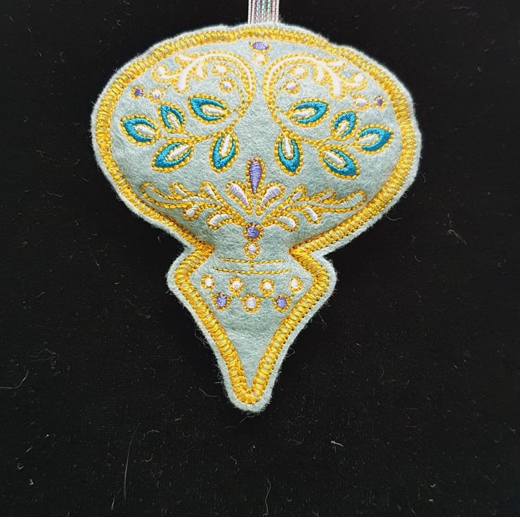 Machine embroidered design on washable felt and filled with hypoallergenic fiberfill.