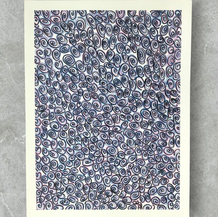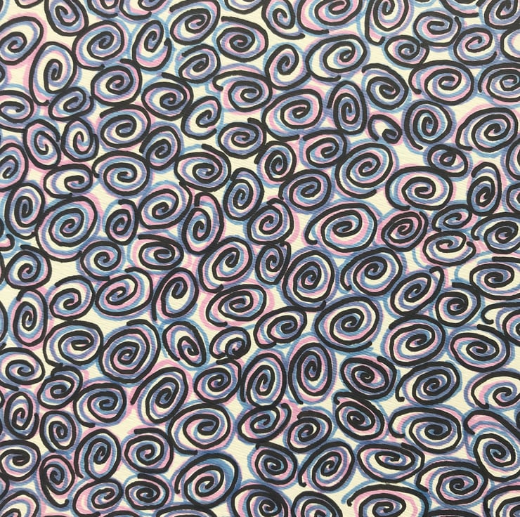 As with my other drawings using this colour combination I didn't start with an end result in mind. I just did what my mind and hand told me. Coming up with a title sometimes comes easy but sometimes is really doesn't. Looking at this working a few days after its completion I thought of the title Hypnosis, I feel the swirls repeating can be seen as hypnotic and also whilst in the process of creating it I felt a sense of deep relaxation, focused attention and the noise in my mind was reduced, these are also side effects of hypnosis.
