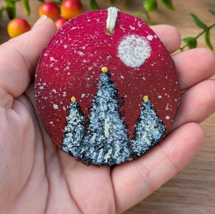 https://folksy.com/items/8381829-Double-Sided-Hand-Painted-Wood-Slice-Ornaments-Winter-Trees-in-Various-Colours-