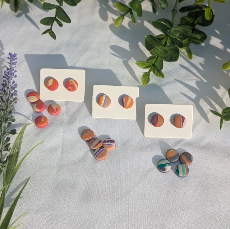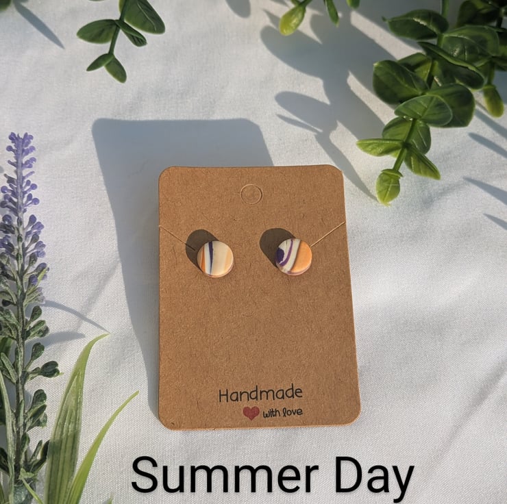 Handmade in Wales, beautiful polymer clay stud earrings. Available in three style colours all falling under a Summer Dreams theme;