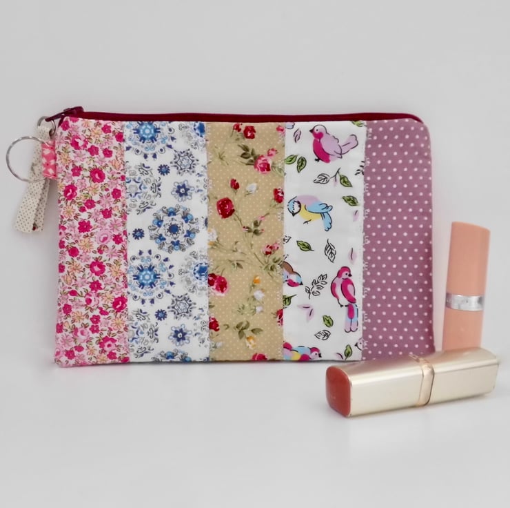 I inserted a key ring into one side and finished the zip with a fabric pull.