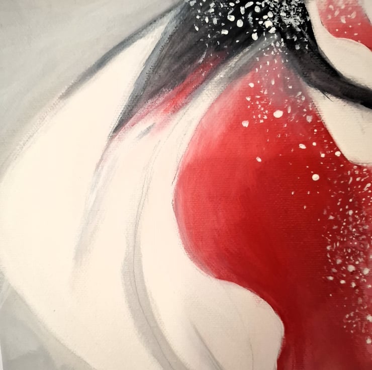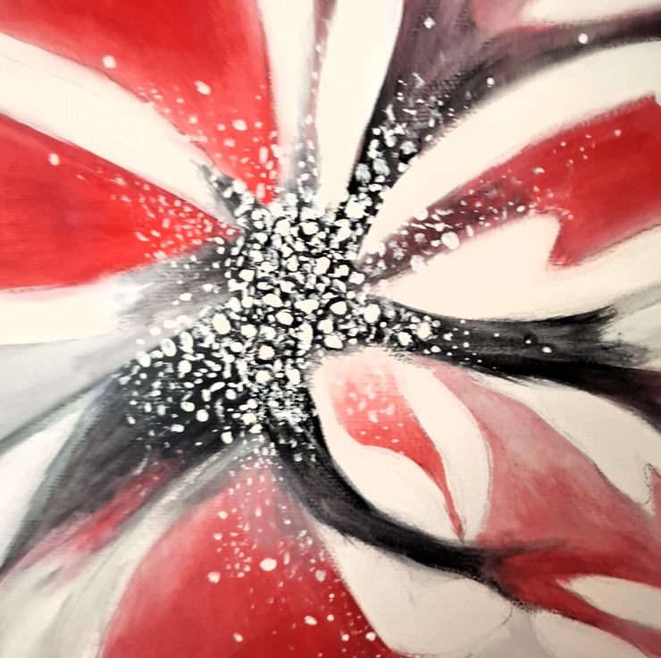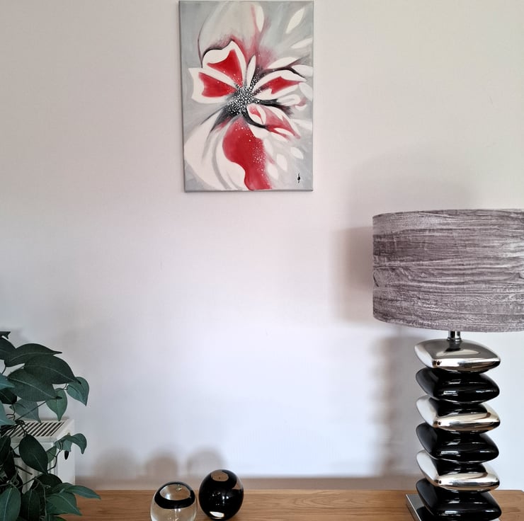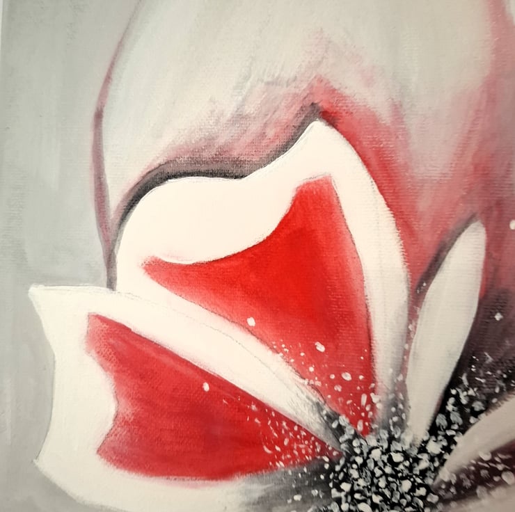 I came across a painting in a local store in Spain when on holiday and thought it was really striking yet pretty and soft at the same time. So I wanted to try my own interpretation of it using a bright red on a soft grey background, adding the Paynes grey for definition in the centre and around the petals. One of my favourite pieces so far. Hope you enjoy it too
