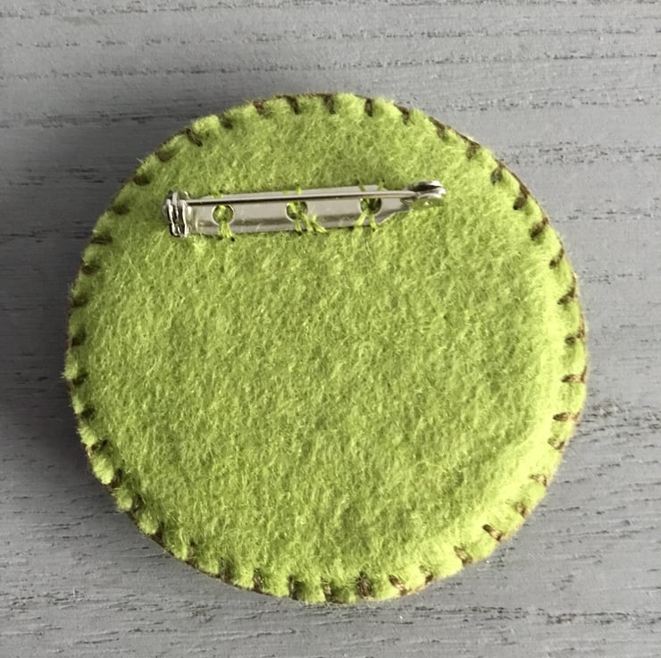 This brooch is 2.50 inches (6 cms) in diameter…..a nice wearable size to enhance a jacket, cardigan, coat or jumper. The brooch has a metal brooch pin with a safety catch sewn on the back for secure wear.