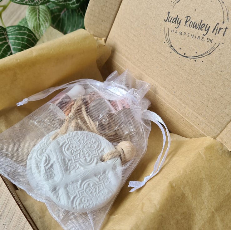 As a decoration hang in a window, use as a gift tag/bouquet tag or Christmas decoration. Or use as a diffuser and hang where you want to enjoy the aroma, e.g. car, bedside, wardrobe. Instructions are enclosed for use as a diffuser (also see pic). 2ml bottles are included to fill with your preferred oil. The decorations are sent wrapped and in a box so would make a lovely gift. A great Christmas gift or for secret santa