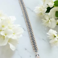 Fitted with a satin silver plated metallic clasp, which is easy to put on and remove and is very secure as it will not 'snap' apart. The bracelet is 2cm at it’s widest point.