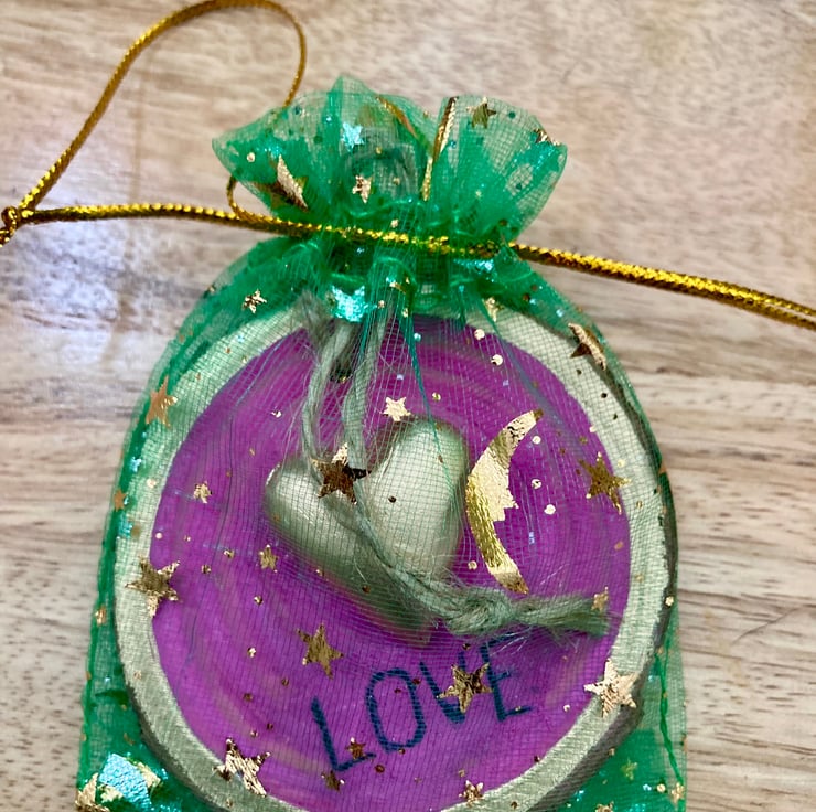 Presented in a pretty green organza pouch this hanging decoration makes the perfect affordable and meaningful gift for anyone you love or hang it up at home (or the car) to remind yourself that love is all that really matters.
