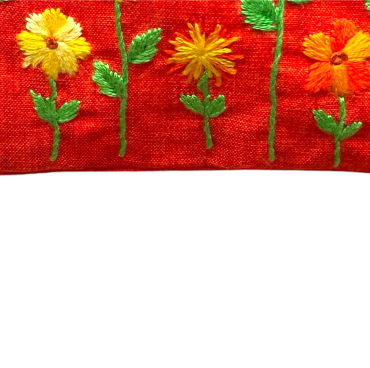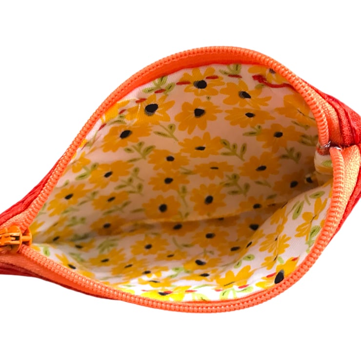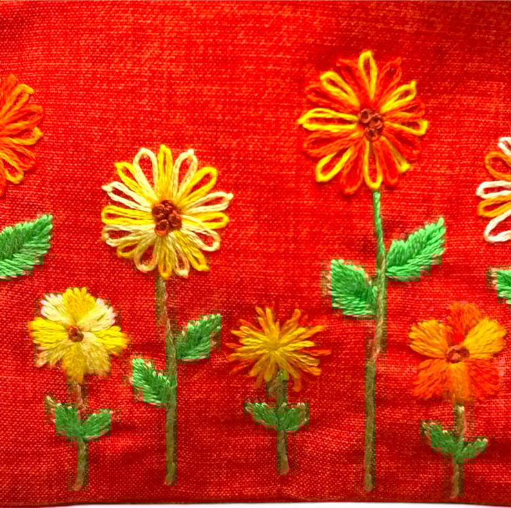 A pretty coin purse with embroidery sunflowers. It is 13cms by 9cms or 51/2 ins by 31/2 ins in old money.