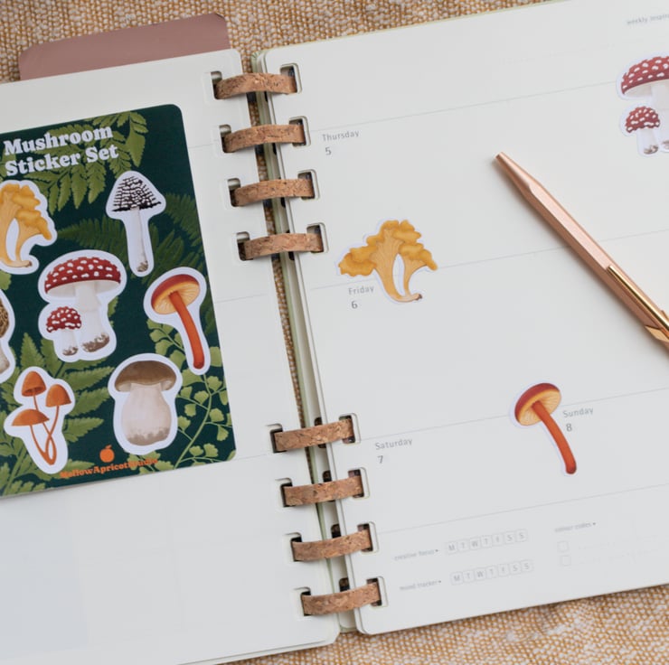 The Mushroom Sticker Sheet provides you with 7 different mushroom stickers to decorate your life.