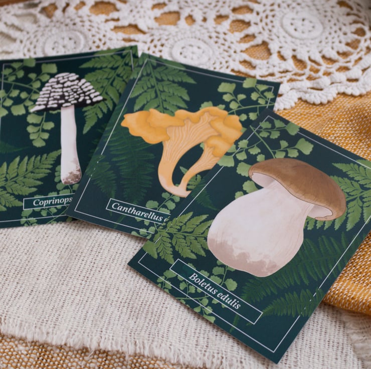 The mushroom postcards come with 7 different motives or as a bundle and has been created in collaboration with KreativWerkstatt24.