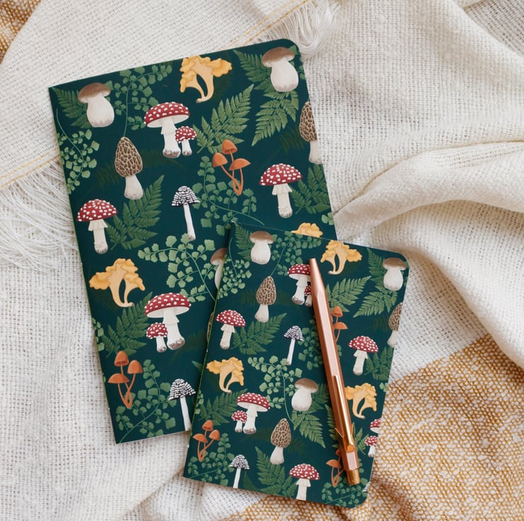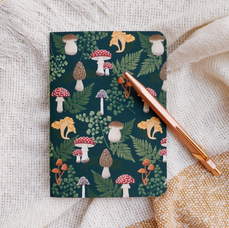 This notebook is for all the mushroom people and forest enthusiasts! Not only does it have a beautifully illustrated cover with a soft touch finish but it comes with a unique recycled paper on the inside. The slight cream colour comes from the mix of recycled paper and recycled cover and has a wonderful touch. If A6 is too small for you: we also offer a bigger A5 notebook.
