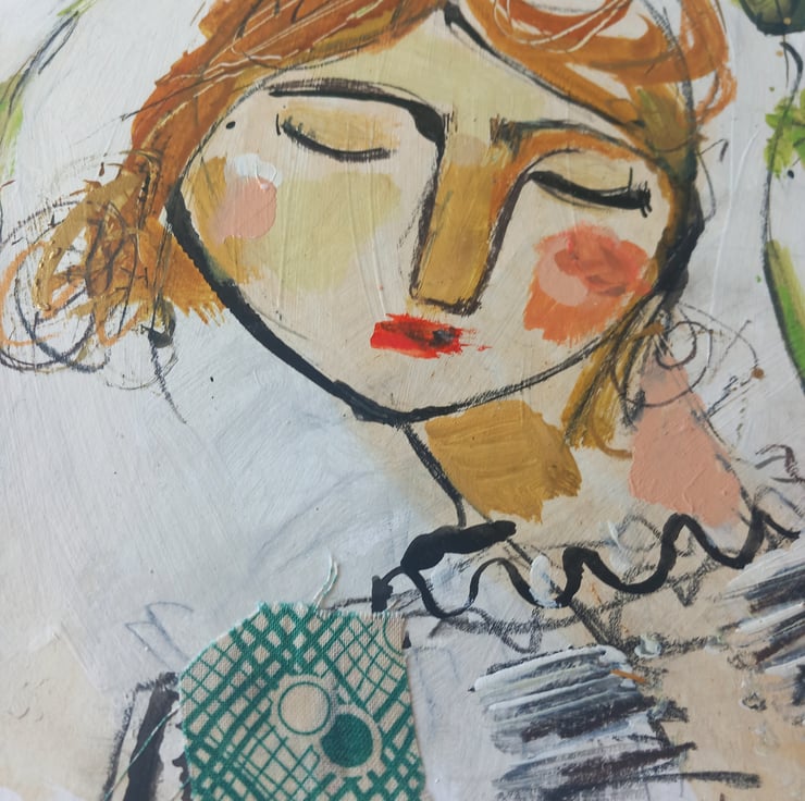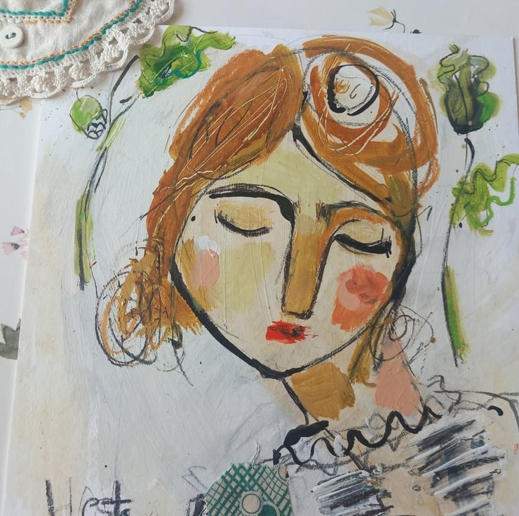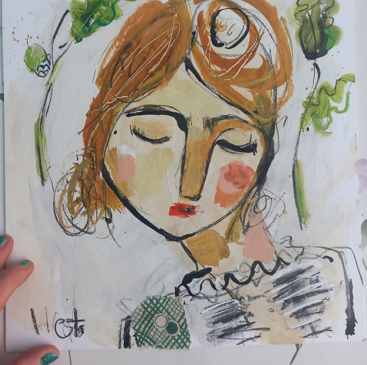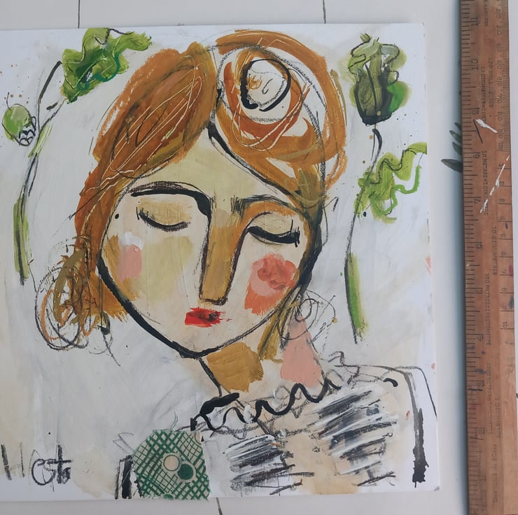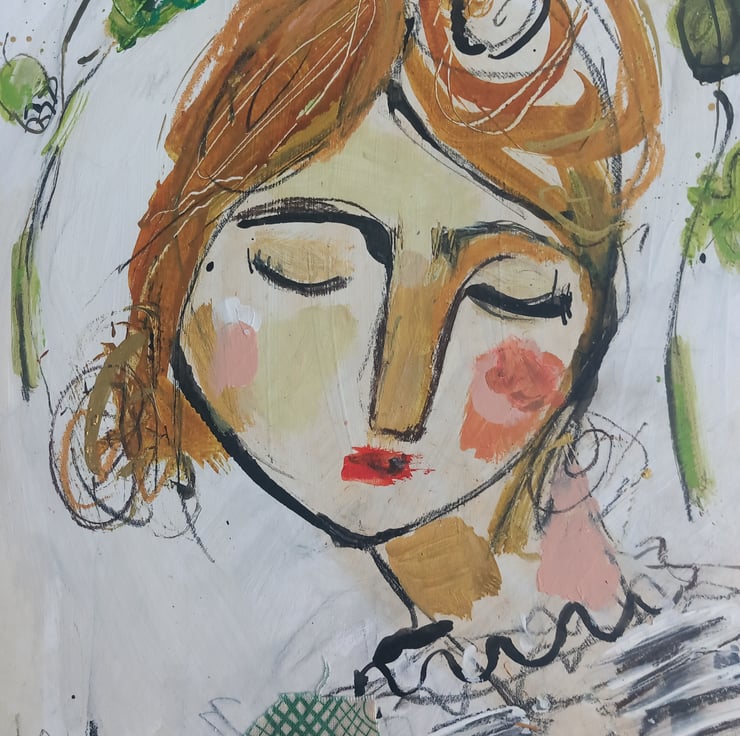 She know her own mind a strong capable girl is Tilda. I use a plant reed dipped in ink for the outline. Each one so different.