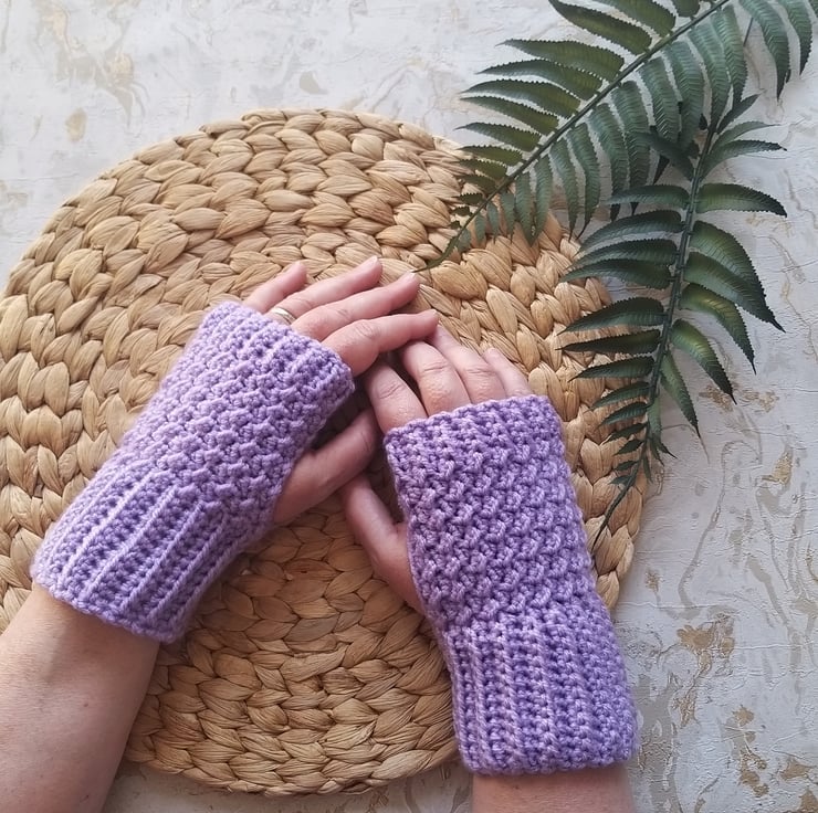 These super snuggly mitts are crocheted using a premium chunky yarn. With a stretch cuff, and a nice gentle bit of give they will fit most teenage/adult hand sizes.