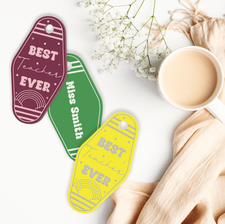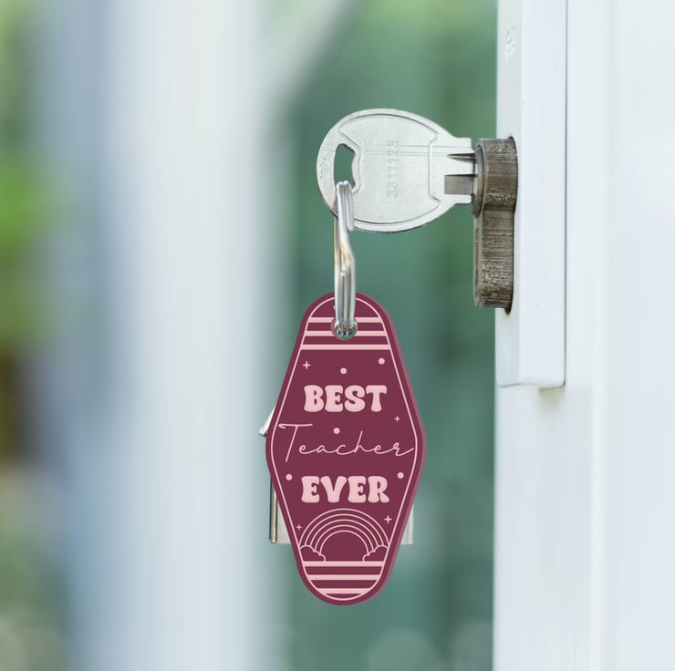 Show your appreciation for the extraordinary educator in your life with our "Best Teacher Ever" acrylic keyring!