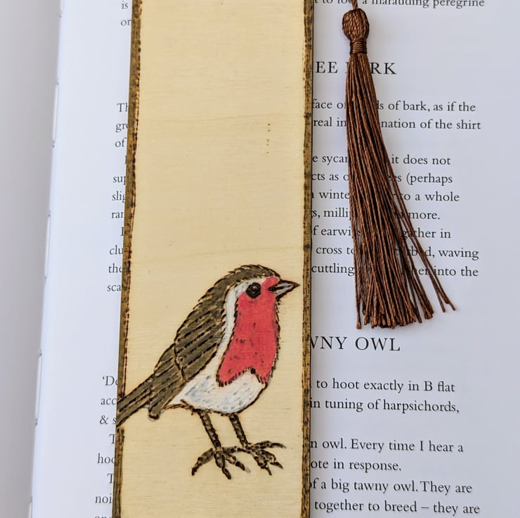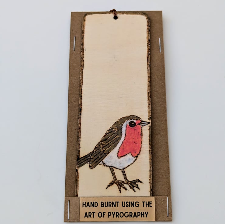 As each robin bookmark is handburnt and painted no two will be identical and the one received may differ slightly from the photos.
