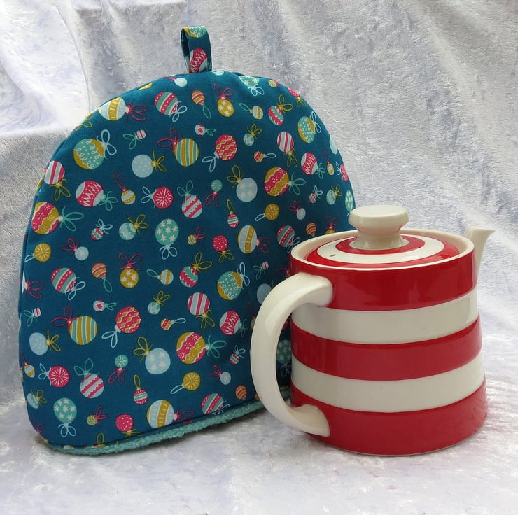 This is a medium sized tea cosy, made to fit a 2-4 cup teapot.