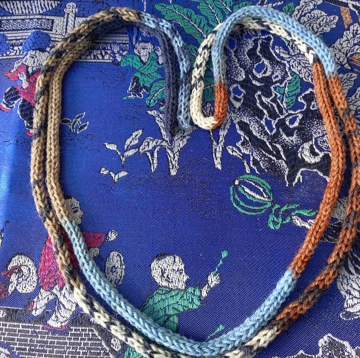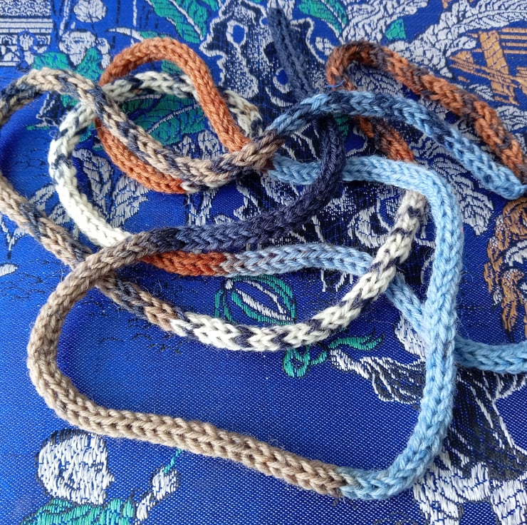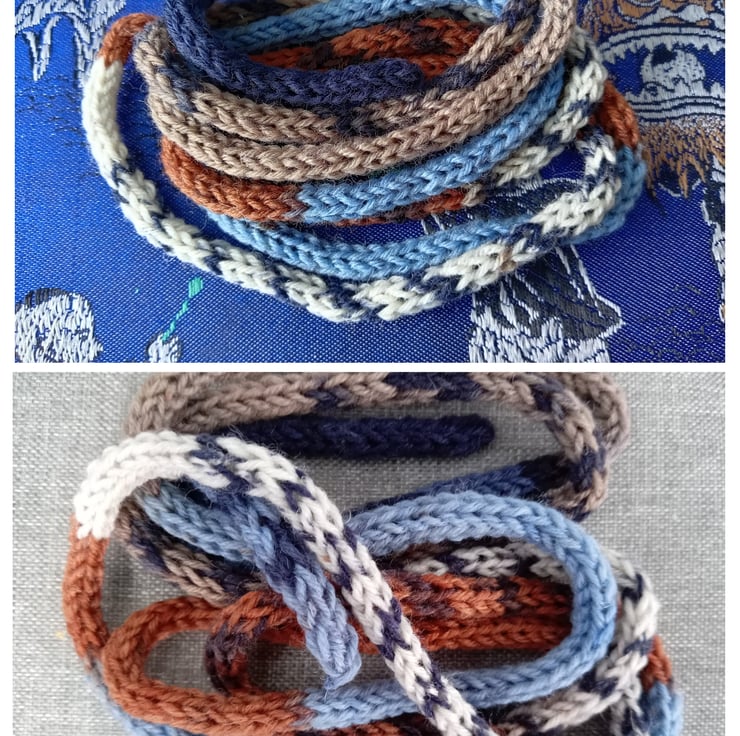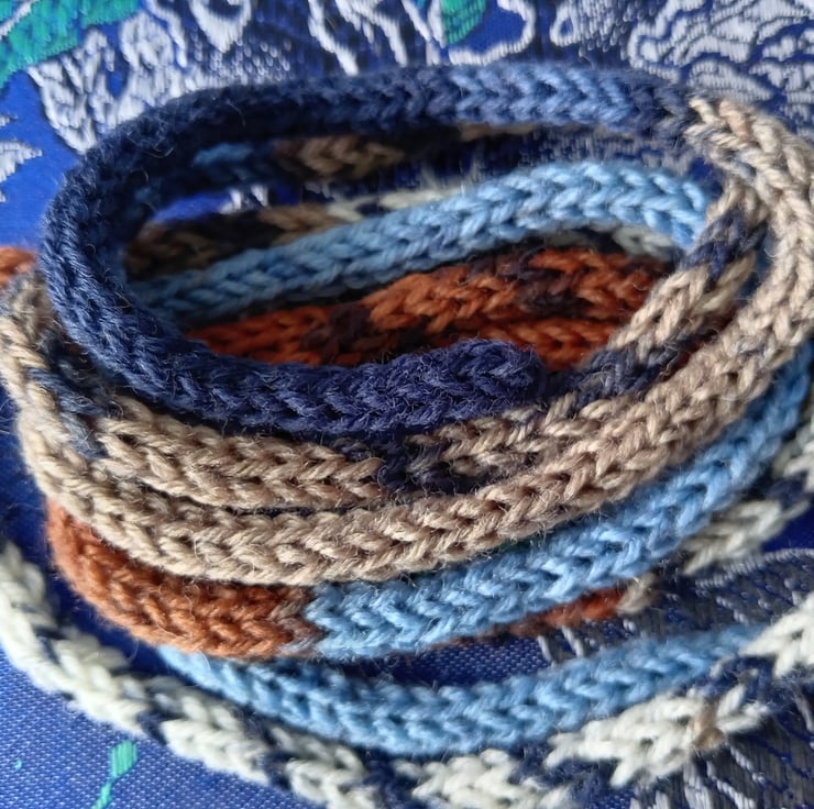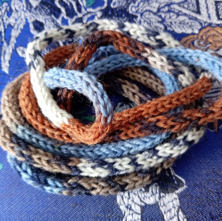 This is in more autumnal earthy tones and is an acrylic/wool mix yarn.