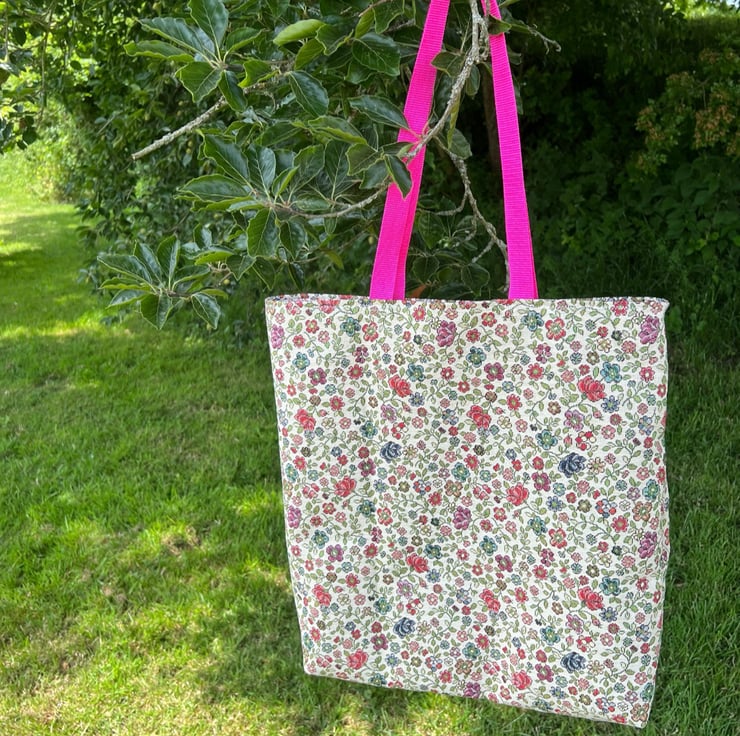 I love making simple pretty bags that are a decent size for holding my current crochet or knitting projects or that can be used as everyday bags for a few bits of shopping or your lunch for a day out .