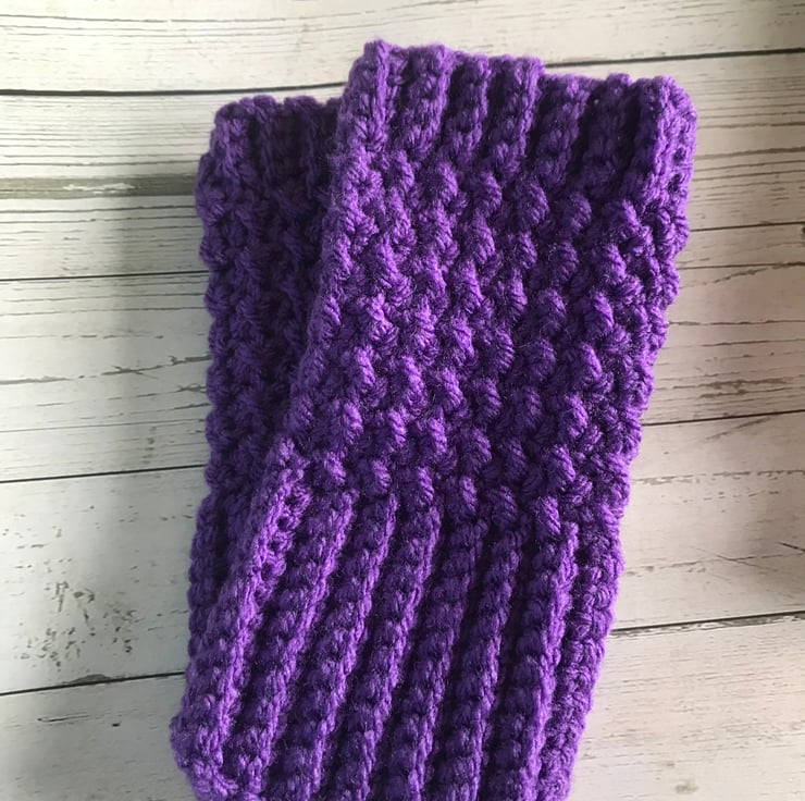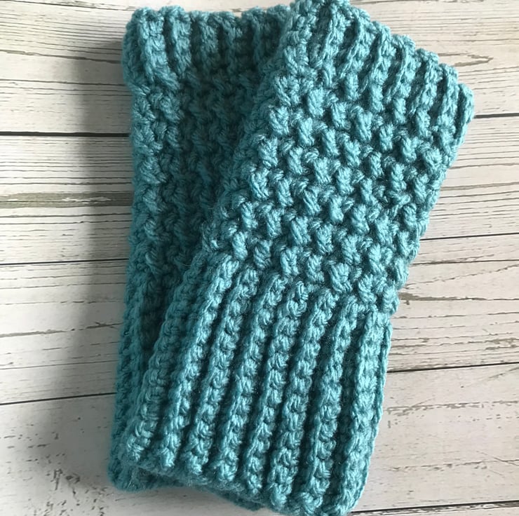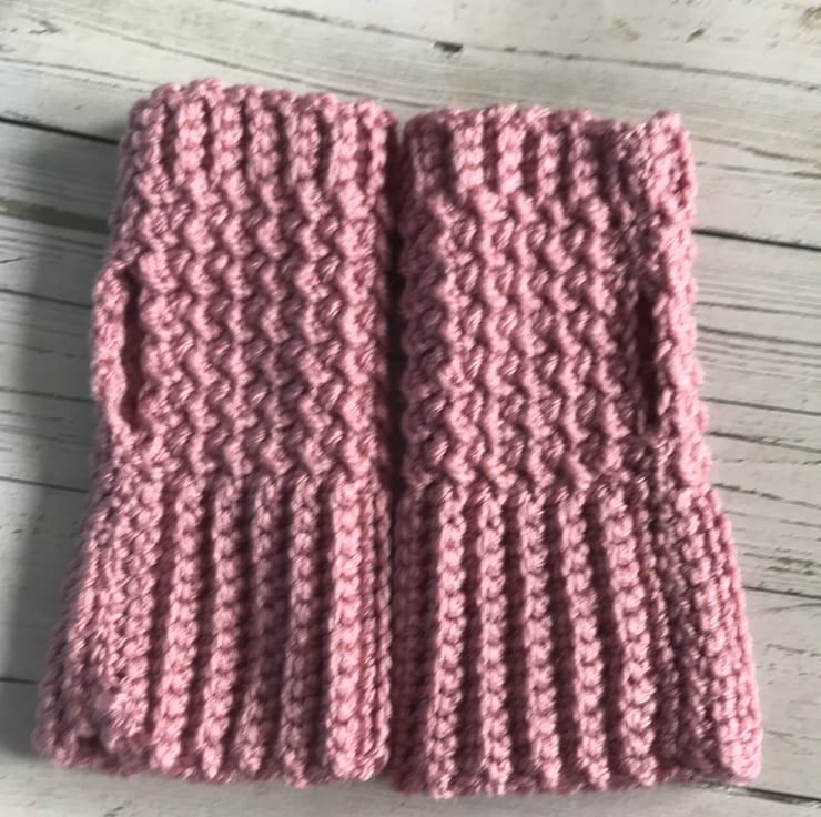Crochet handwarmers with thumb opening. These soft and squishy mitts are perfect for chilly days . I wear mine whilst sitting at the computer as my hands get cold if I am sitting still!