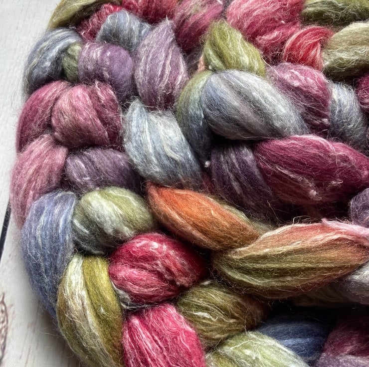 This fibre is just so fine and beautifully soft and silky, and the tones give such jewel tones to the colours. Fabulous to dye and spins like butter.