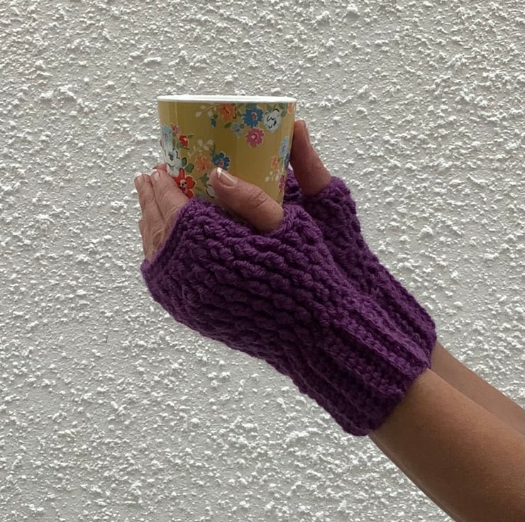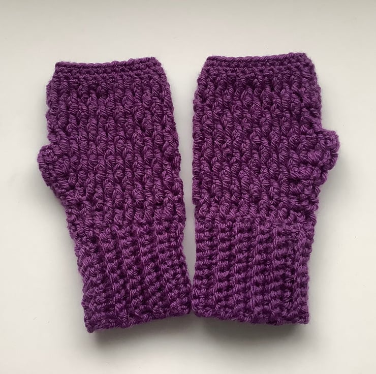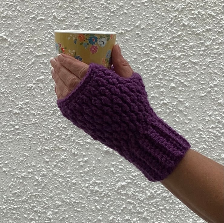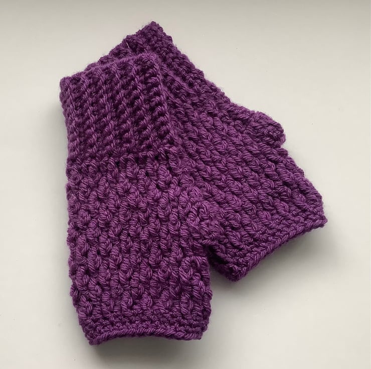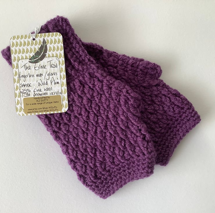 I have designed and crocheted these fingerless mitts 'The Erme Trail ' using a lovely,soft wool blend yarn . Lightweight ,yet the textured stitch gives a thicker feel . Warm , cosy and practical too.