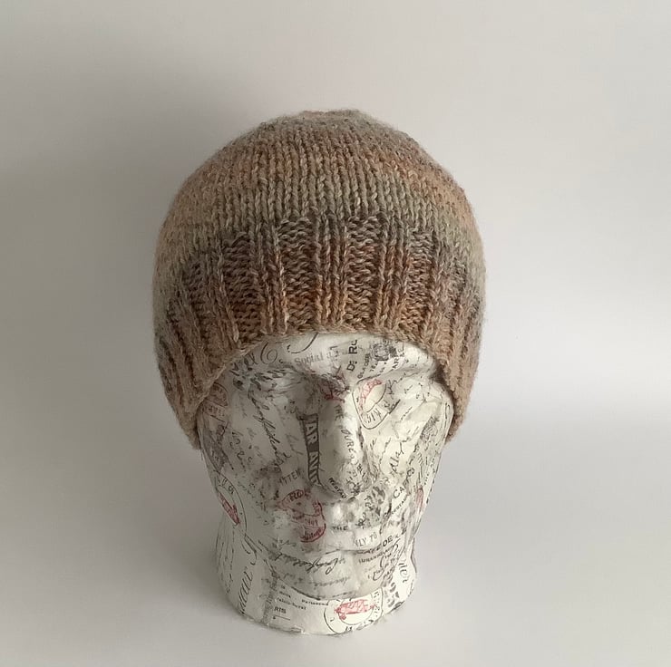 COLOUR; This particular hat is ' Tawny Owl' - a lovely self-striping blend of light brown , beige , rust.