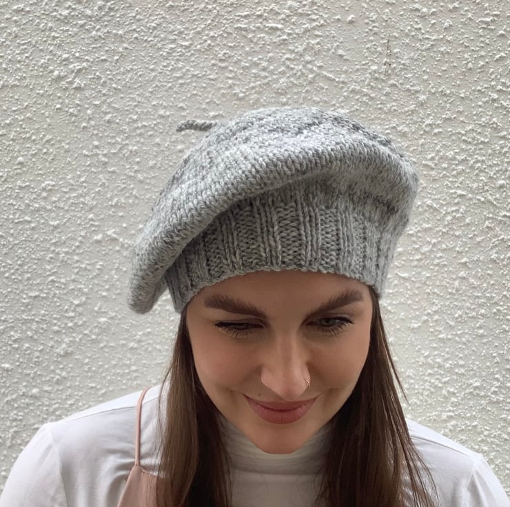 I have designed and knitted this French - style beret / tam , using a lovely soft wool blend yarn . Lightweight , yet warm and comfortable. How will you wear yours ??!