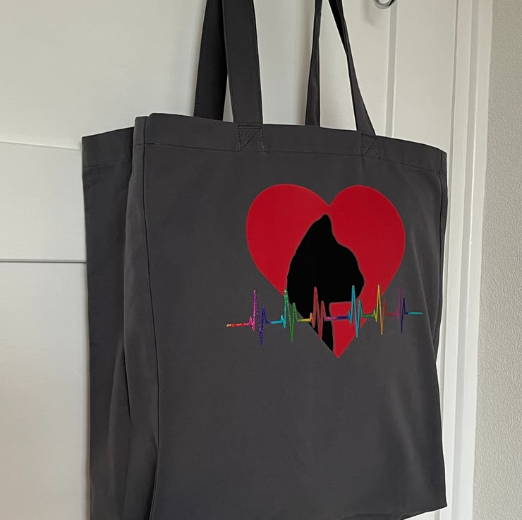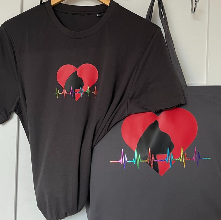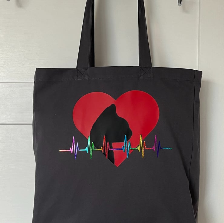 Great gift for any Cat lover, tote style shopping bag featuring my favourite crafting buddy, our Devon rex "Bovril" and matching T-Shirt. The design on both the bag and the shirt are based on his silhouette and applied using heat transfer vinyl.