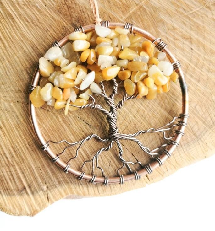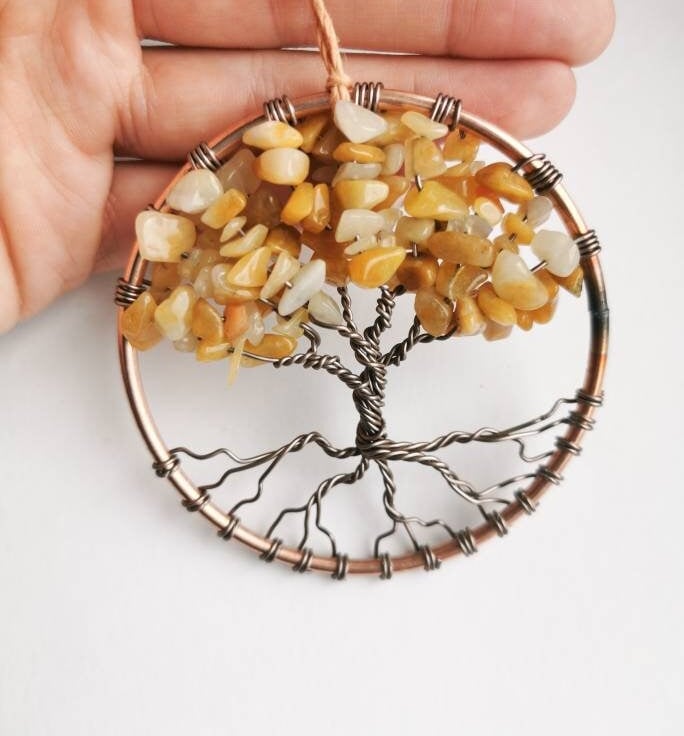 Stunning, Yellow jade, Crystal Yggdrasil Tree of life suncatcher would make the most perfect addition to your ornament collection or your car rear view mirror. You can hang as a wall hanging or a beautiful suncatcher.