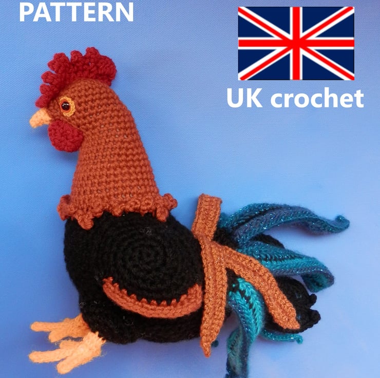 CROCHET PATTERN not an instant digital download but a PDF which will be sent to you by EMAIL to make a Cockerel/Rooster measuring about 8 inches (20cm) tall.