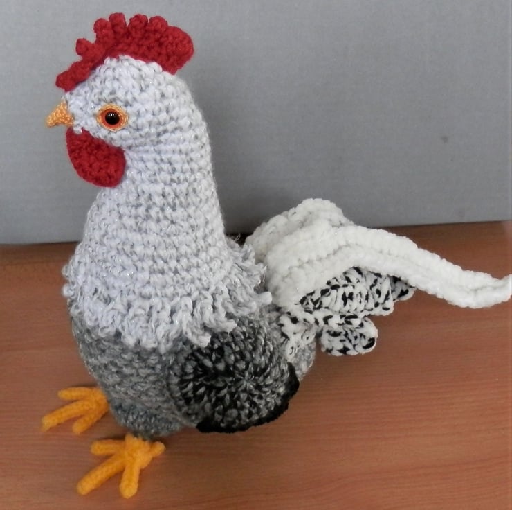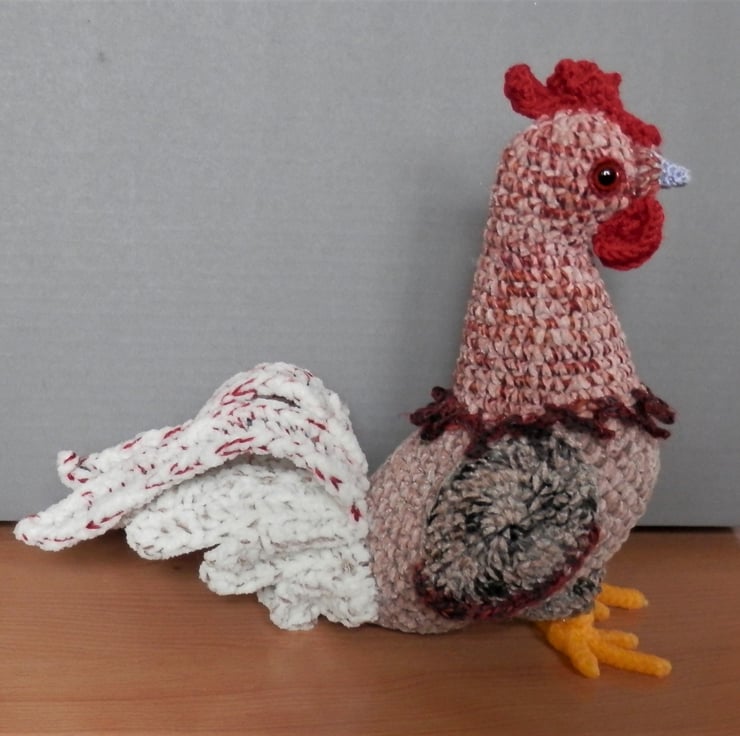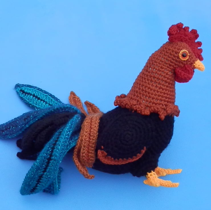 CROCHET PATTERN not an instant digital download but a PDF which will be sent to you by EMAIL to make a Cockerel/Rooster measuring about 8 inches (20cm) tall.