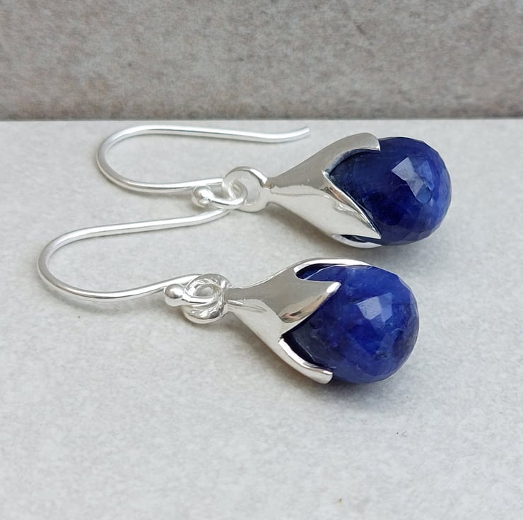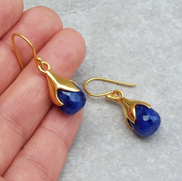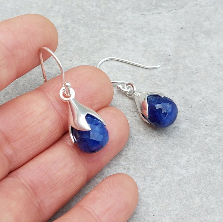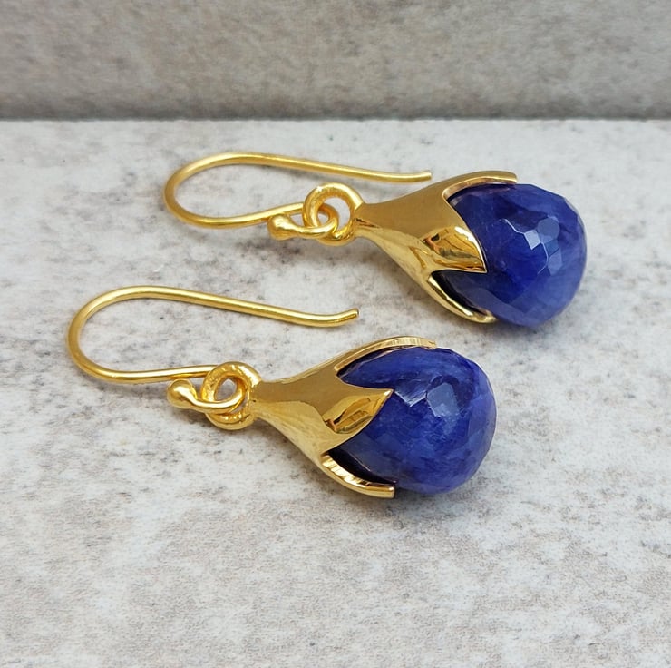These elegant dangle Sapphire earrings showcase vibrant gemstones, beautifully crafted to resemble delicate tulip blooms. Perfect for both casual and formal occasions, these earrings are a delightful accessory that brings a pop of colour and floral elegance to your look.