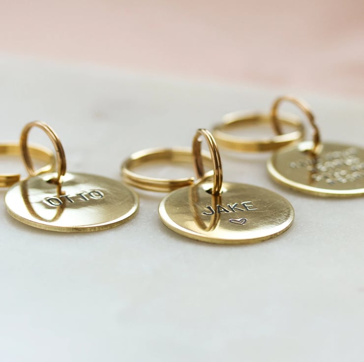 Create a special, personalised ID tag for your dog with this hand-stamped brass tag.