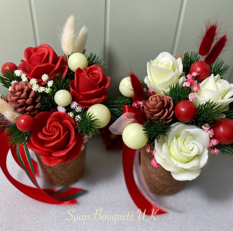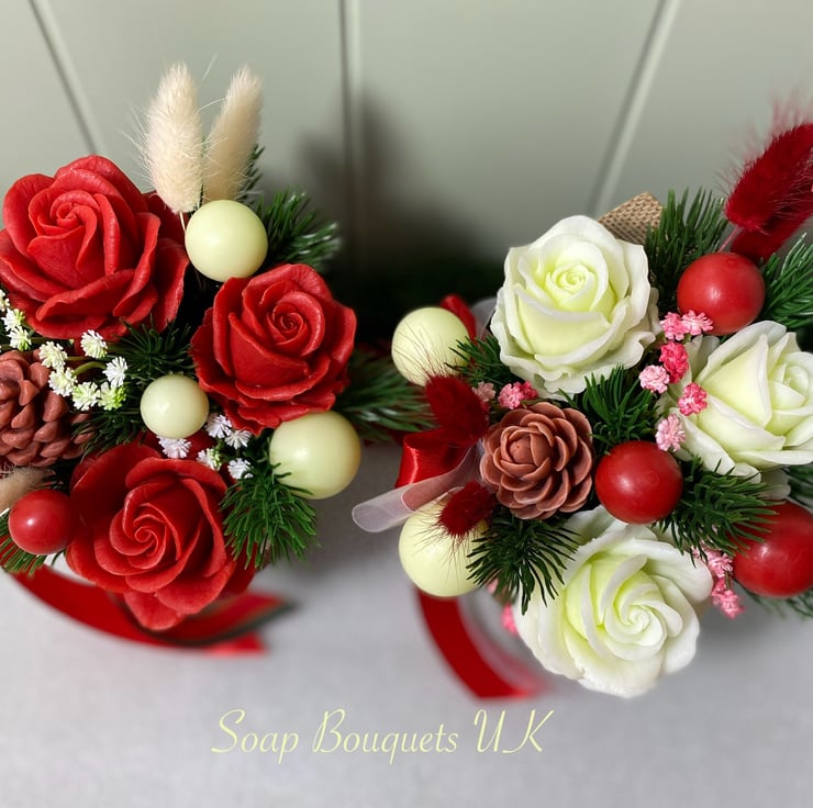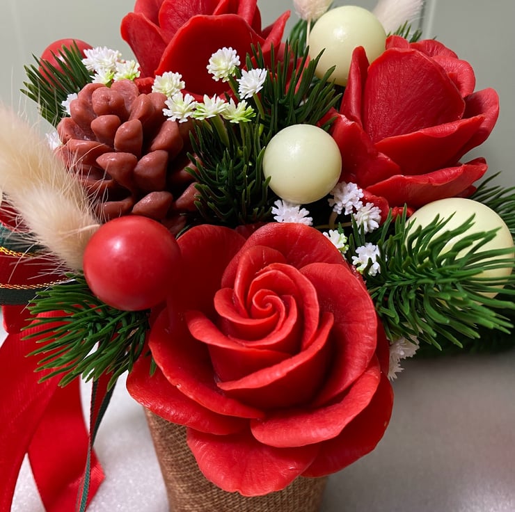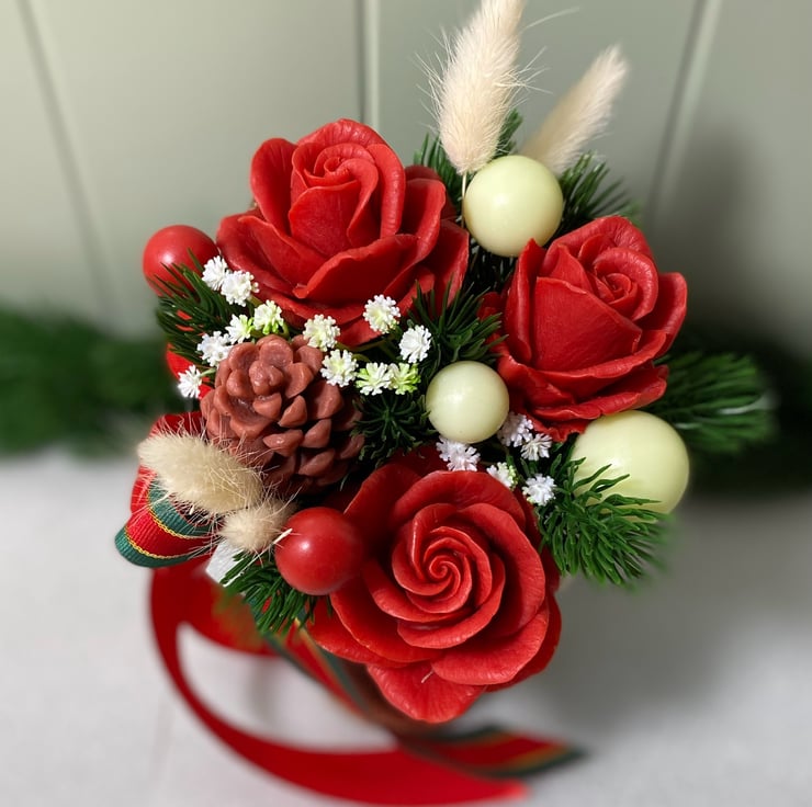 Handcrafted Vegan Christmas Soap Flower Bouquet – The Ideal Christmas Gift and Festive Decoration. Perfect Christmas Gift for Her.