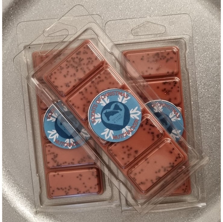 Add the fragrances of Christmas to your home with these luxurury highly scented nutcracker fragranced soy wax melt bars hand poured into clamshells and finished with a sprinkle of glitter for a touch of Christmas sparkle. Made with premium quality, responsibly sourced soy wax and a variety of the finest fragrances providing 60 hours of long-lasting home scent.