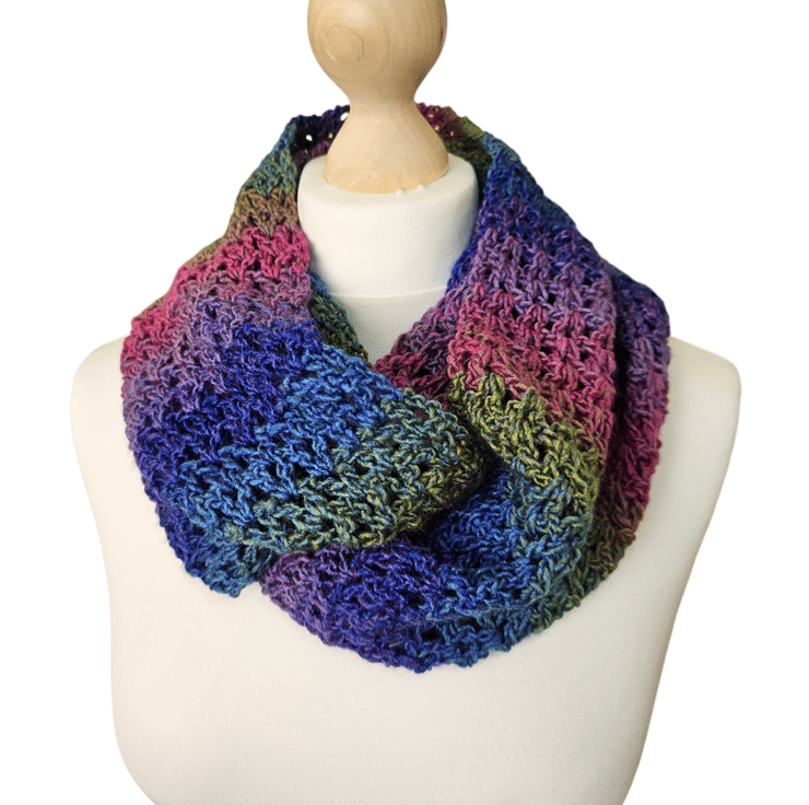 Crafted with premium acrylic yarn, this exquisite infinity scarf is a one-size-fits-all accessory, measuring approximately 22cm in width and 70cm in length.