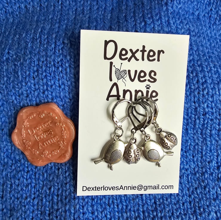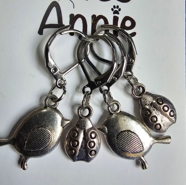 This is a set of 4 silver toned sea themed stitch marker / progress keepers