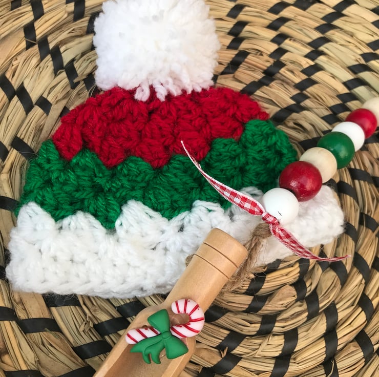 I have a random choice of four mugs, these are only sold with hats, hand crocheted and designed.