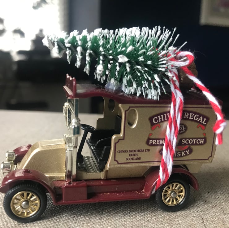 . A take on the American red truck with a Christmas tree on the back. These SCOTTISH themed WHISKY are my top of the range, very limited in numbers are I have to search year long for specific brands, some very rare and reflects in the price. Original, local and very unique unusual and a thoughtful gift for a Whisky lover. Looks great displayed on the trophy shelf or added to the top of a boxed whisky as a gift. Be thoughtful, be original.