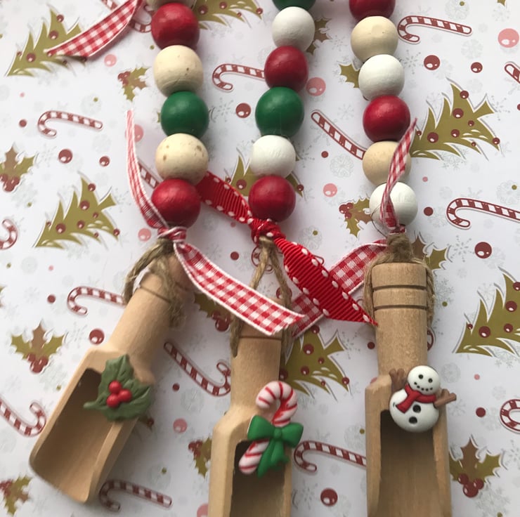 These super cute mini garlands with a scoop and for decoration around your shelf’s and tiered tray. The theme will add to the fun and each is handmade with miniature attention. Delightful and original. Approximately 6”