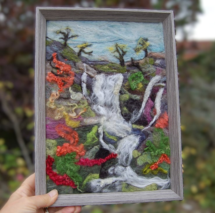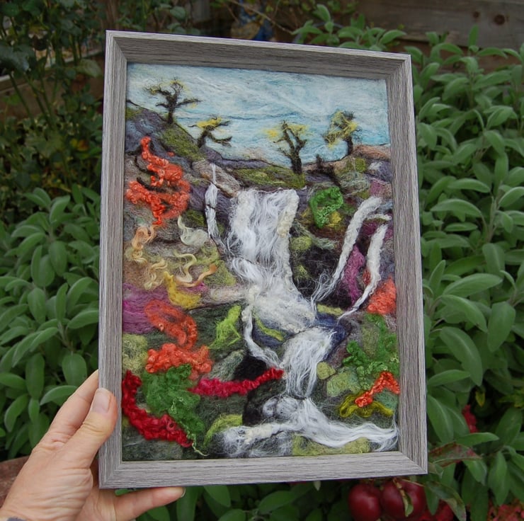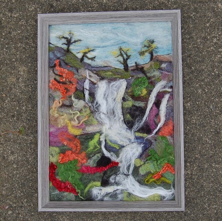 Textile art picture - Waterfall - Needle felted using wool fibres