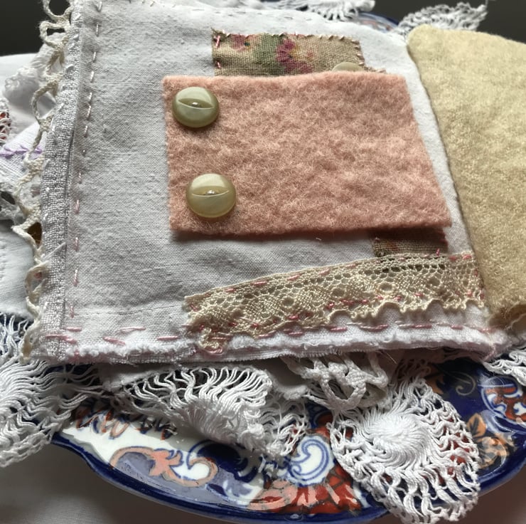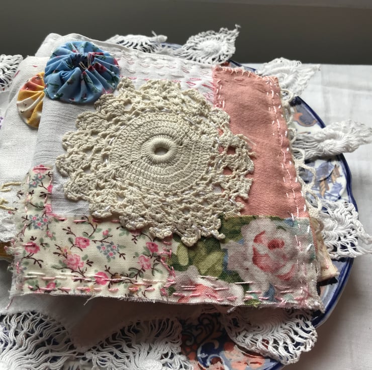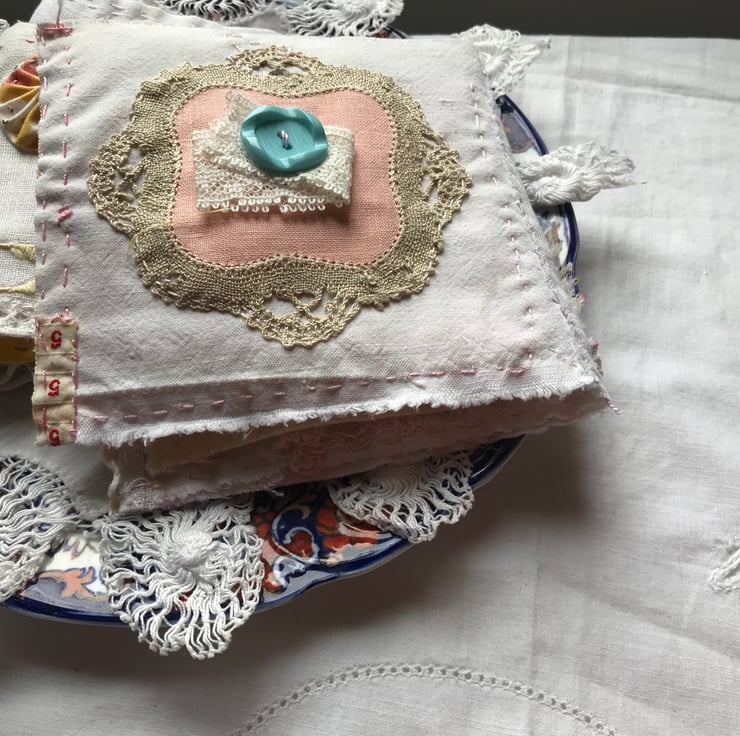 All handmade from vintage linens,cotton,lace,buttons