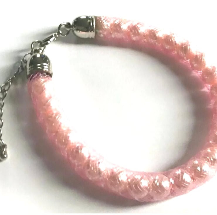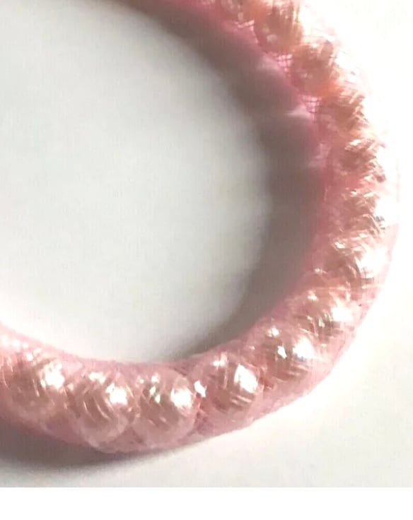 A stunning Sparkly Mesh Bracelet filled with 6mm Round Pale Pink Faux Pearls.