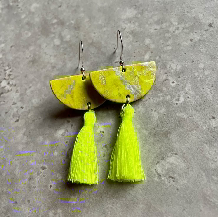 Bright & Breezy neon yellow and silver hand painted Leather Earrings