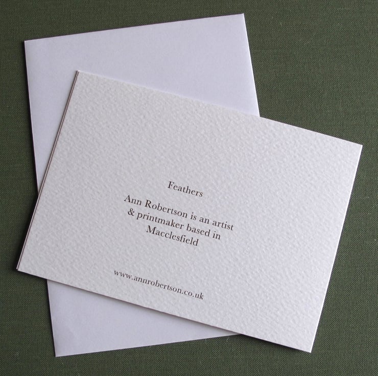 Blank greeting card. Original art work by Ann Robertson. Printed on high quality Tintoretto Gesso paper with a hammered finish. A6 width 14.8 cm height 10.5 cm. Side fold. Plain white envelope.
