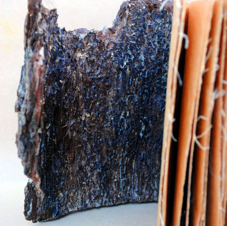 Although not suitable for fine bindings, I was determined to explore other book forms tree bark could be used for. I like to find a use for materials that are often overlooked or are considered to be unsuitable. I found this tree bark on East Hill nr Ottery St. Mary, East Devon.