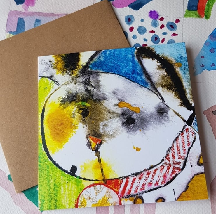 5" x 5" card printed by local printer on 350gsm cardstock comes complete with envelope.