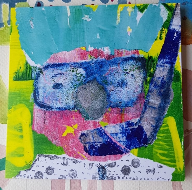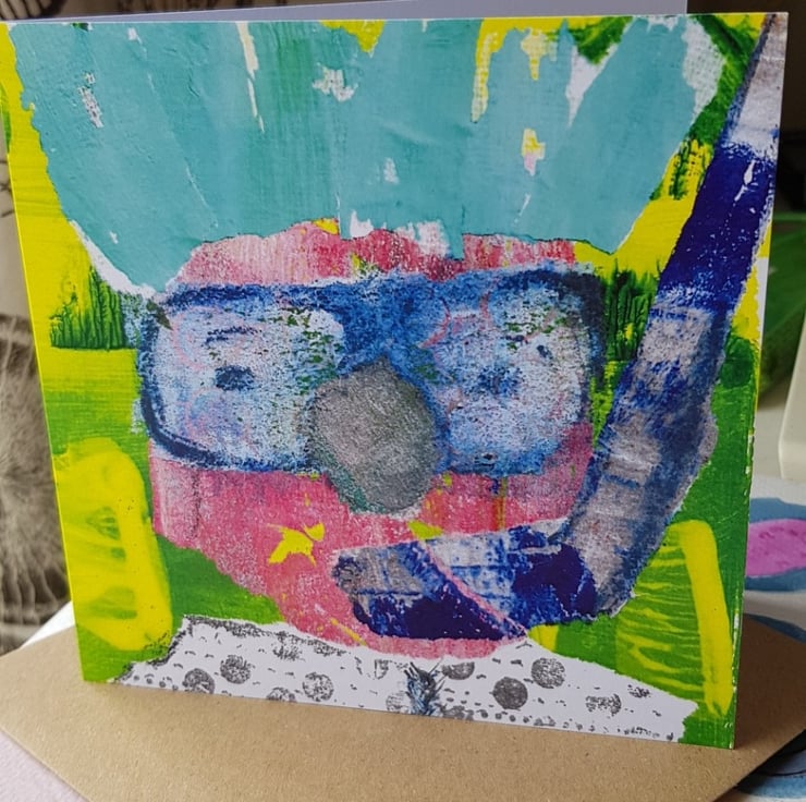 The original acrylic and collage art piece was inspired by holidays and underwater which turned into the Underwater Selfie!
